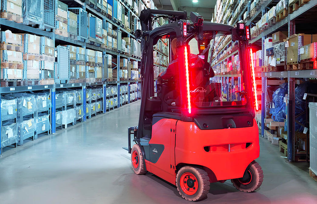 Completa la protezione con accessori Linde che aumentano visibilità e consapevolezza nei punti critici del magazzino.